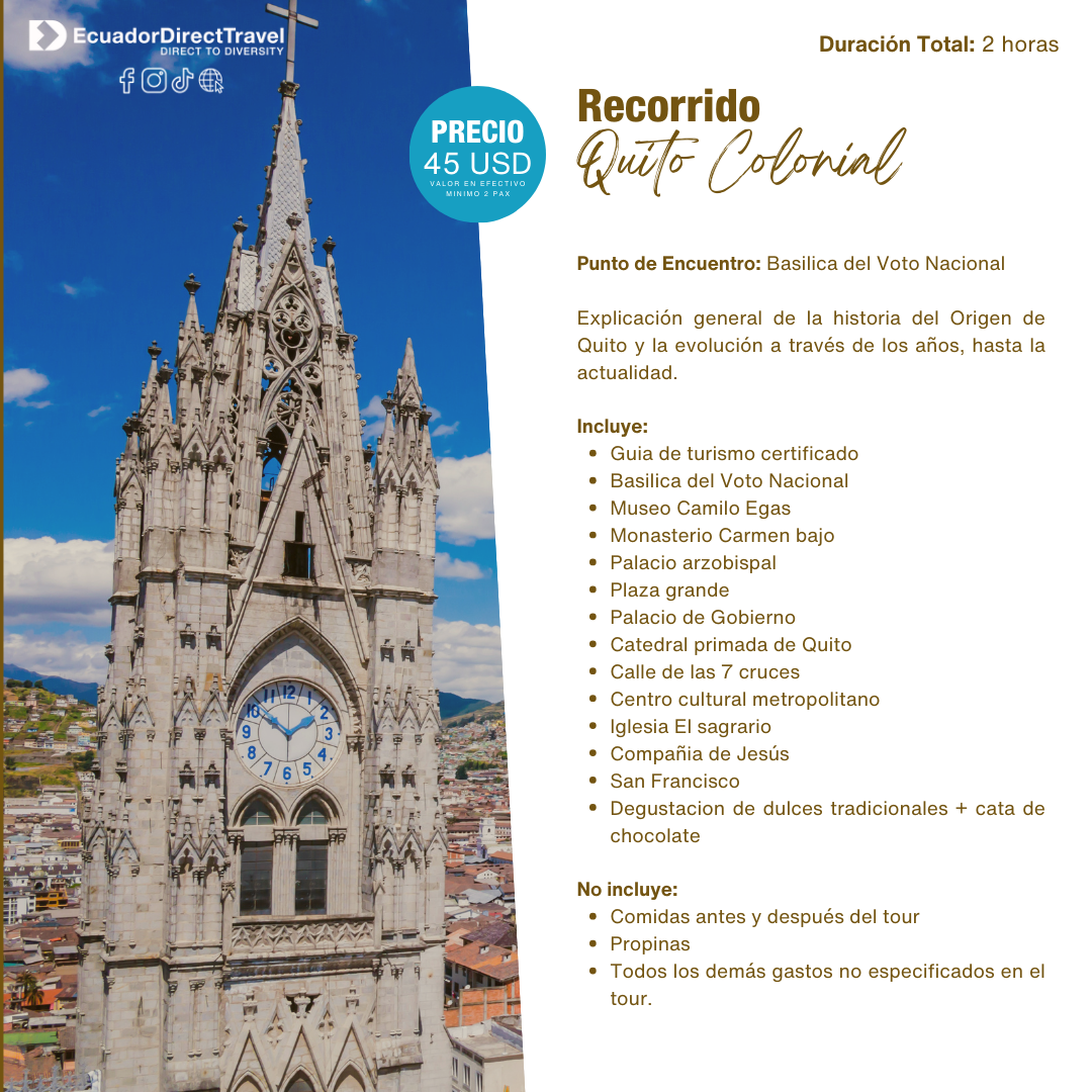 Vive la magia colonial de Quito: iglesias doradas, plazas vivas y balcones llenos de encanto.